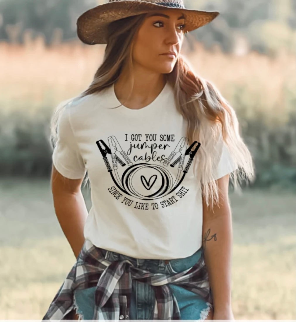 I Got You Some Jumper Cables - Since You Like to Start Shit - Screen Print T-Shirt